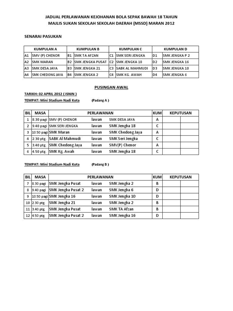 Jadual Bola Sepak B18 Mssd 2012 Pdf